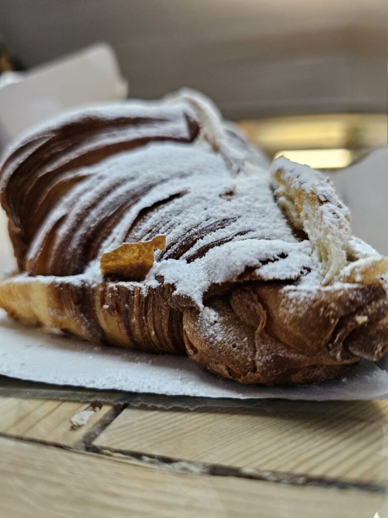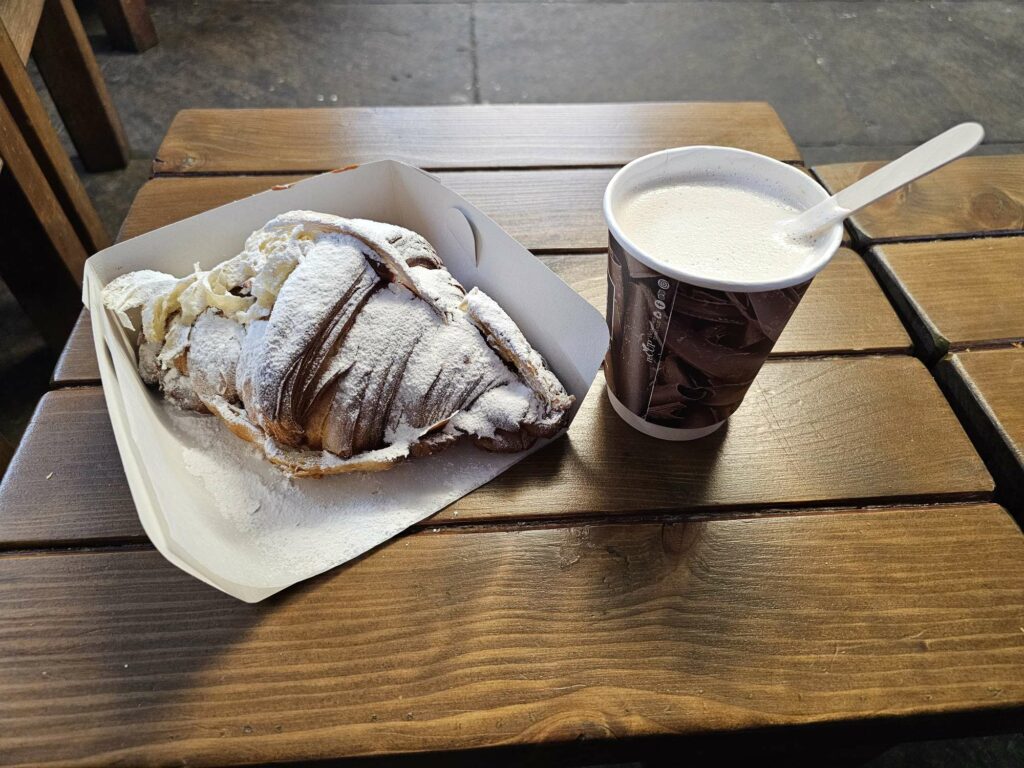Thought I'd push the boat out and get two different pastries. The one on the left, was great... But the one on the right, OH WOW. It was amazing, it was like a pasty outside and a pancake with chocolate on the inside. Holy moly.